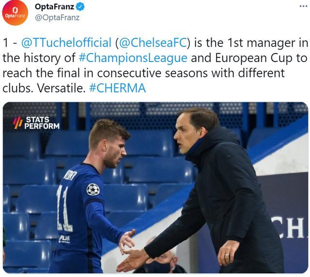 自此,图赫尔成为了欧洲冠军杯和欧冠联赛历史上第一位连续两个赛季带两支不同球队进入决赛的主教练。