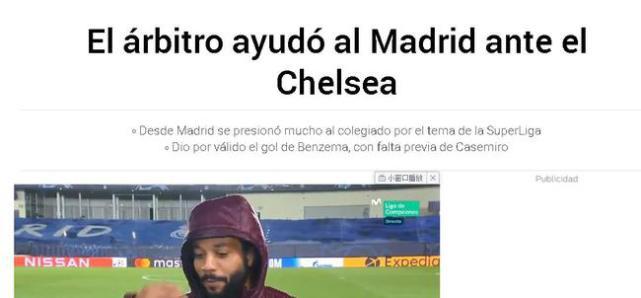 《每日体育报》还表示,裁判赛前就遭受舆论压力,马德里的一些媒体甚至在封面上强调,裁判必须要公正、职业,然而如果说有一支球队要抱怨裁判的判罚,那也只能是切尔西。