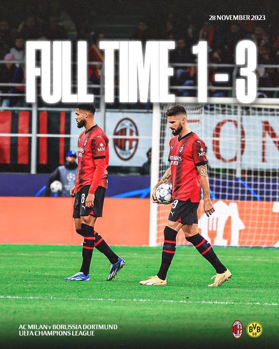 JRS直播网11月29日讯 ,欧冠小组赛F组结束了第5轮的两场角逐,多特蒙德客场3-1力挫AC米兰,而大巴黎则在主场1-1绝平了纽卡斯尔。