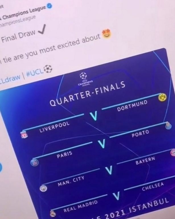 欧冠8强对阵出炉:皇马战利物浦 拜仁对阵巴黎