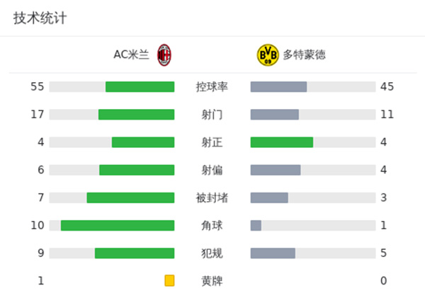 关键事件: 第10分钟,卡拉布利亚禁区内放倒吉滕斯,主裁再次判罚点球,这次罗伊斯主罚命中,米兰主场0-1落后↓