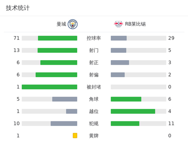 关键事件: 第13分钟,莱比锡门将布拉斯维西大脚发动进攻直接过顶打穿防线送助攻,奥蓬达扛开阿克单刀机会冷静低射破门,曼城主场0-1落后↓