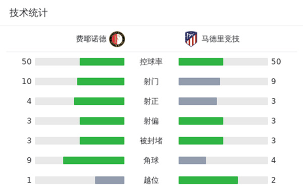 JRS直播网讯:北京时间11月29日欧冠 小组赛 第5轮,费耶诺德主场对阵马德里竞技。上半场,略伦特传中造成海特勒伊达自摆乌龙,莫拉塔单刀被扑。下半场,埃尔莫索小角度破门,魏费尔扳回一分,圣地亚哥-希门尼斯头球自摆乌龙, 最终,马竞3-1客胜费耶诺德提前1轮晋级淘汰赛。