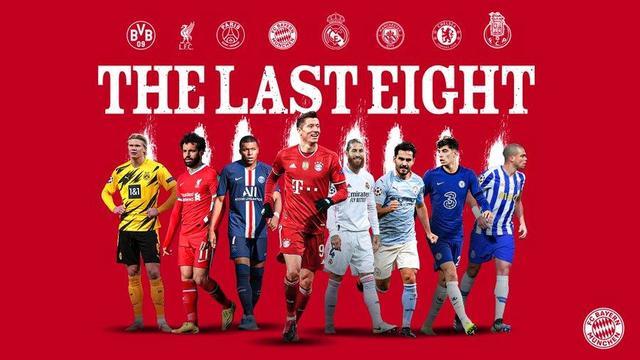 JRS直播网3月18日讯 今天凌晨,切尔西和拜仁在欧冠八分之一决赛中分别淘汰马德里竞技和拉齐奥,本赛季的欧冠八强球队已经全部诞生。