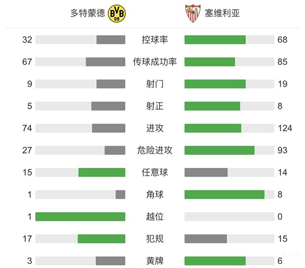 全场比赛结束,多特2-2战平塞维利亚,总比分5-4晋级八强。