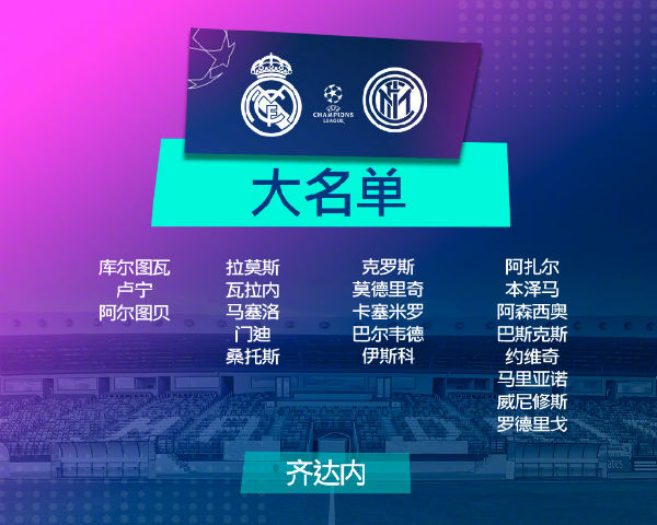 皇马vs国米欧冠大名单:本泽马阿扎尔领衔锋线!
