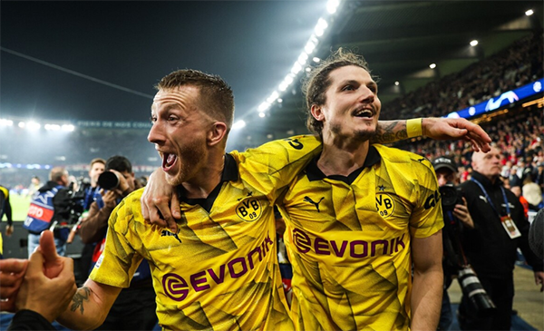 首回合1-0,多特蒙德发挥出了主场优势,与全队身价高达约10亿欧元的土豪队巴黎圣日耳曼踢出五五开的比赛场面,凭借更好的整体性和效率,以1-0拿下比赛。次回合,多特蒙德展现了更强的韧劲,精神面貌和竞技状态远胜大巴黎,在场面劣势巨大的情况下依然取胜。
