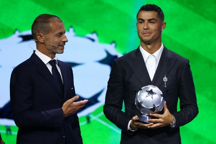 JRS直播网讯 北京时间8月30日凌晨,39岁的葡萄牙巨星C罗作为嘉宾,参加了欧冠抽签仪式,他还领取了欧冠历史最佳射手奖,该奖项由欧足联主席切费林亲自为他颁发。而随后,C罗也动情发表了获奖致辞。