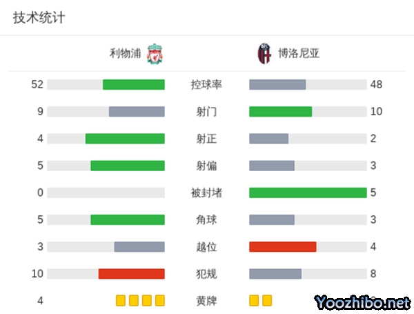 最终利物浦主场2-0战胜博洛尼亚。