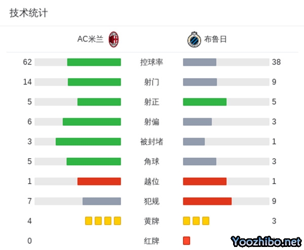 最终AC米兰主场3-1战胜布鲁日,米兰取得本赛季欧冠首胜+终结两连败。