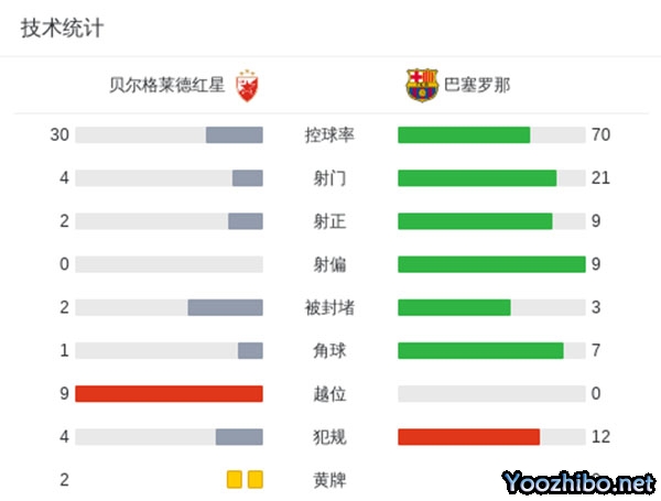 最终,巴萨5-2击败贝尔格莱德红星,各项赛事取得7连胜!7场更是狂轰29球!