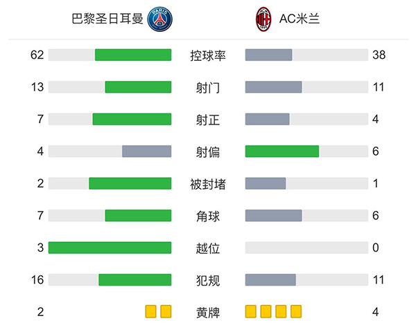 全场比赛结束,最终巴黎圣日耳曼3-0AC米兰。
