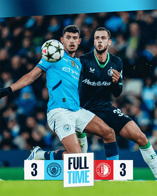JRS直播网讯在北京时间11月27日凌晨结束的欧冠联赛阶段第5轮一场焦点战中,曼城坐镇主场爆冷3-3被费耶诺德逼平,这支曾经的欧洲王者,已经各项赛事6场不胜,状态相当低迷。