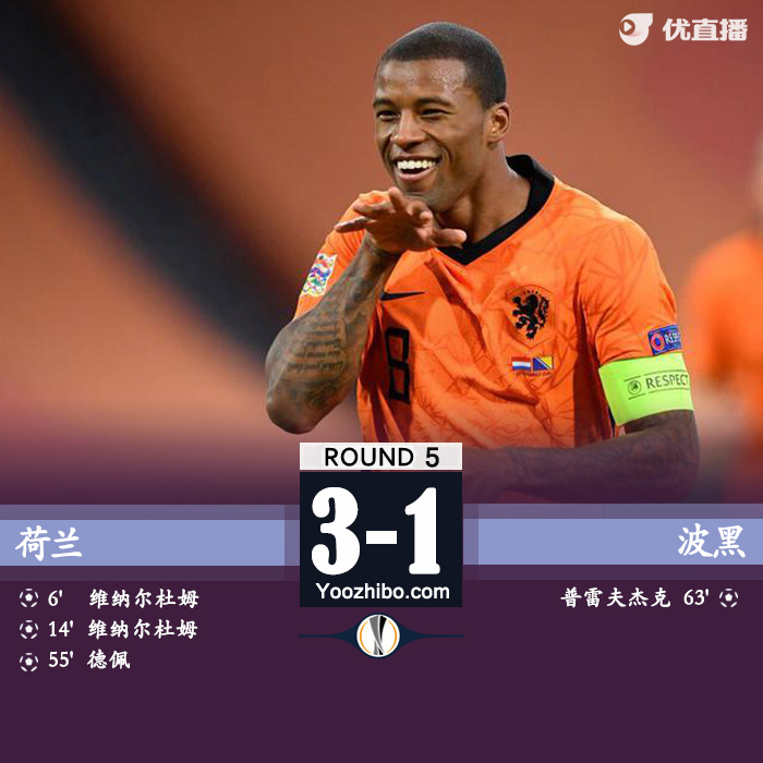 JRS直播网讯:北京时间11月16日1时(荷兰当地时间15日18时),欧洲国家联赛A1组第5轮先赛1场,荷兰主场3比1击败波黑,取得近6场首胜,也是弗兰克-德波尔上任以来首胜。队长维纳尔杜姆开场15分钟梅开二度,德佩扩大比分。邓弗里斯两次助攻。