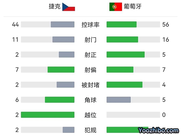 全场结束,葡萄牙4-0战胜捷克。