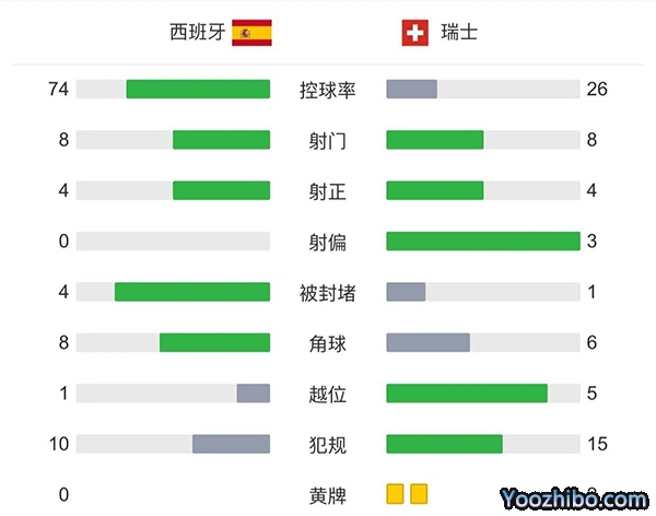 西班牙1-2瑞士 阿坎吉头球破门阿尔巴建功恩博洛制胜