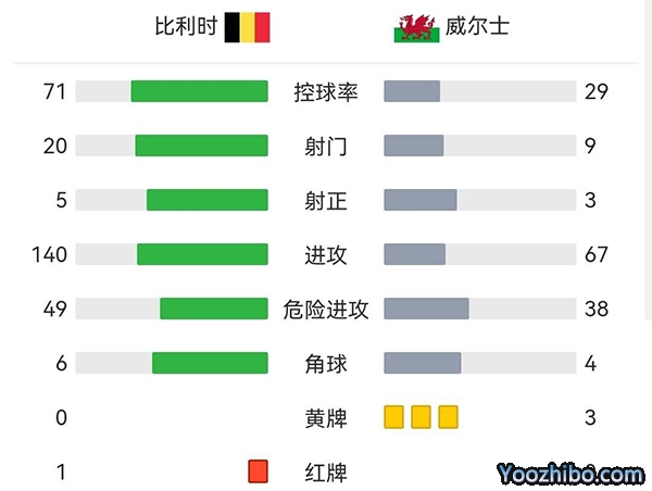JRS直播网讯:北京时间9月23日02:45,欧国联A级D组第5轮展开争夺,比利时坐镇布鲁塞尔的博杜安国王体育场迎战威尔士,本场主裁判为帕拉比伊克。上半场,德布劳内与巴舒亚伊互送传射。下半场,穆尔泰山压顶头槌为威尔士扳回一城;比利时主教练马丁内斯尾声阶段被红牌罚出场。最终,比利时主场2-1击败威尔士。