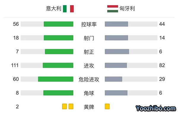 全场比赛结束,意大利2-1战胜匈牙利。