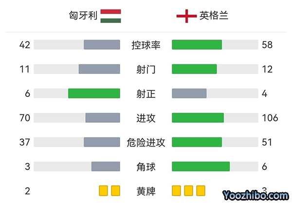 全场比赛结束,英格兰客场0-1不敌匈牙利。