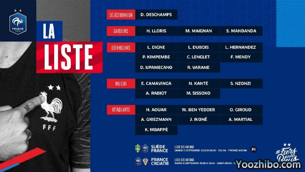 前锋:奥亚尔、本耶德尔、吉鲁、格列兹曼、伊科内、马夏尔、姆巴佩