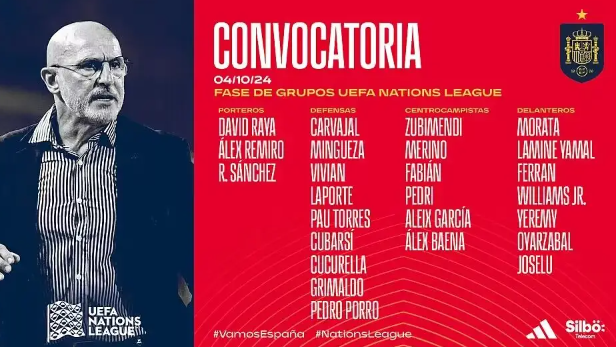 JRS直播网讯 2024年10月4日西班牙国家队公布的新一期大名单如下: