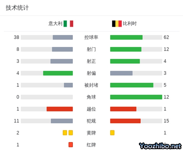 十人意大利2-2比利时 佩剑染红坎比亚索造2球特罗萨德破门