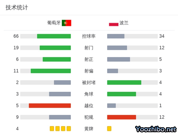 最终,葡萄牙5-1战胜波兰,提前晋级八强。