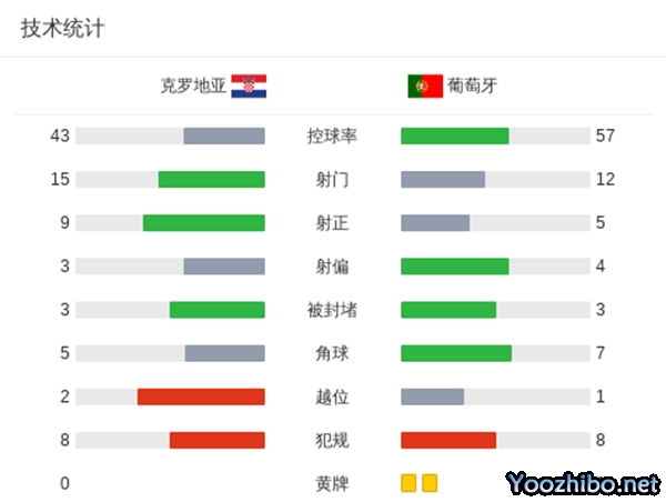 第66分钟,亚基奇右路摆脱坎塞洛传中到后点,无人盯防的格瓦迪奥尔小角度抢射,若泽-萨扑救不及皮球弹进网窝,克罗地亚1-1葡萄牙!