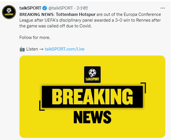 JRS直播网12月20日讯 这场欧会杯G组的最后一轮比赛原定于12月10日进行,但热刺队内多人感染新冠,于是热刺宣布延期,但欧足联刚开始并没有官方宣布延期,热刺的决定被认为是单方面的。