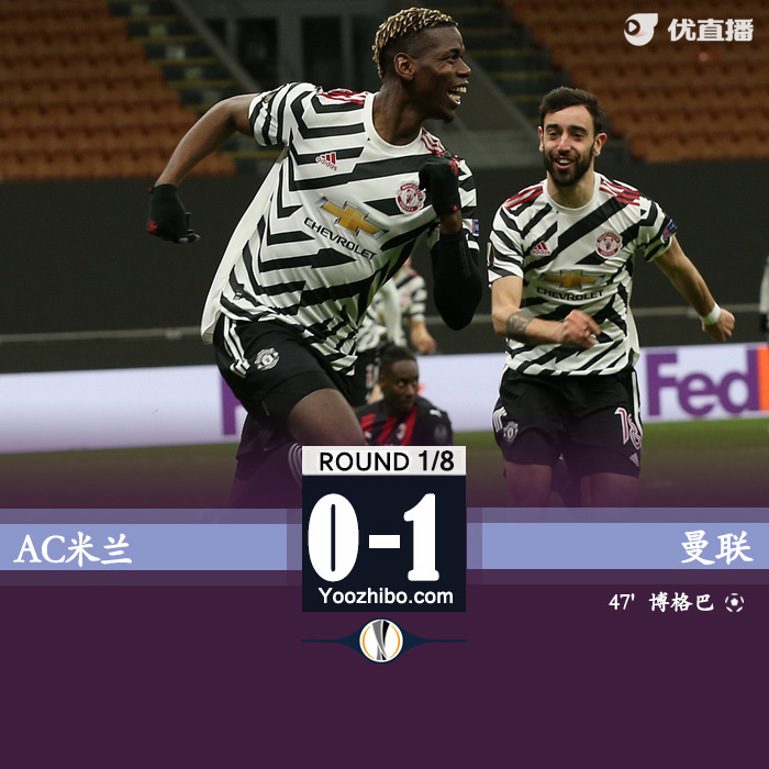 JRS直播网3月19日讯 北京时间3月19日凌晨4点,20-21赛季欧联杯1/8决赛次回合,曼联客场挑战AC米兰。上半时双方没有进球,克鲁尼奇失良机,萨勒马科尔斯远射被扑。下半时博格巴替补建功,伊布头槌攻门被扑出。最终,AC米兰0-1曼联,总比分曼联2-1米兰晋级欧联杯八强。