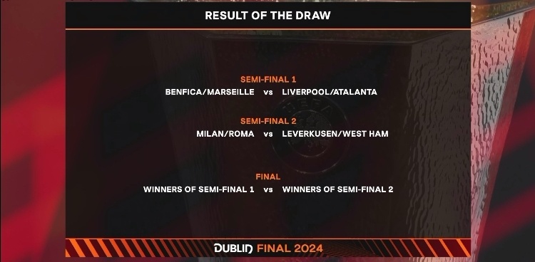 本届欧联杯八强是史上较强的八强。红军利物浦独一档,药厂和米兰该算第二档。如果上半区的本菲卡或马赛能够脱颖而出,他们将在半决赛中迎战利物浦与亚特兰大之间的胜者。大概率利物浦将对阵马赛并胜出。而在下半区,AC米兰与罗马两个意甲球队之间自相残杀,胜出者将与药厂勒沃库森或西汉姆联的胜者在半决赛中相遇。大概率米兰战药厂,药厂估计要胜出。