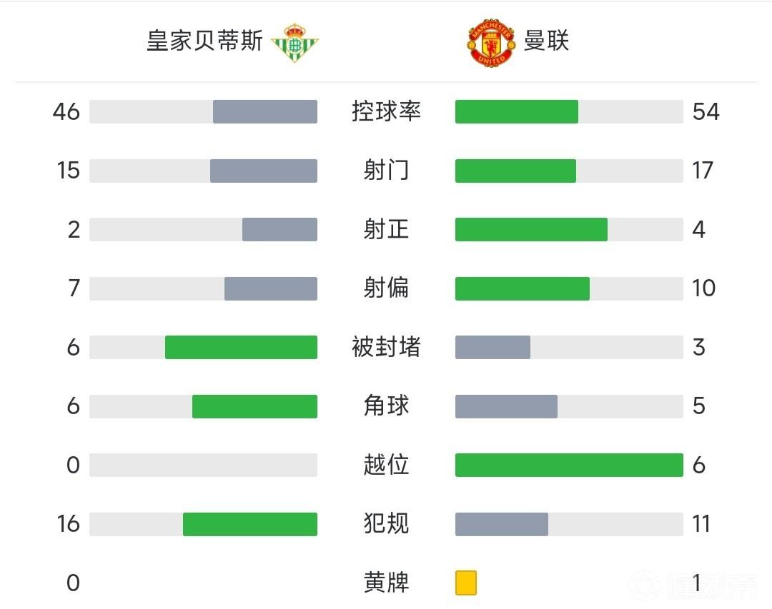 最终全场比赛结束,曼联1-0战胜贝蒂斯,总比分5-1淘汰贝蒂斯晋级8强。
