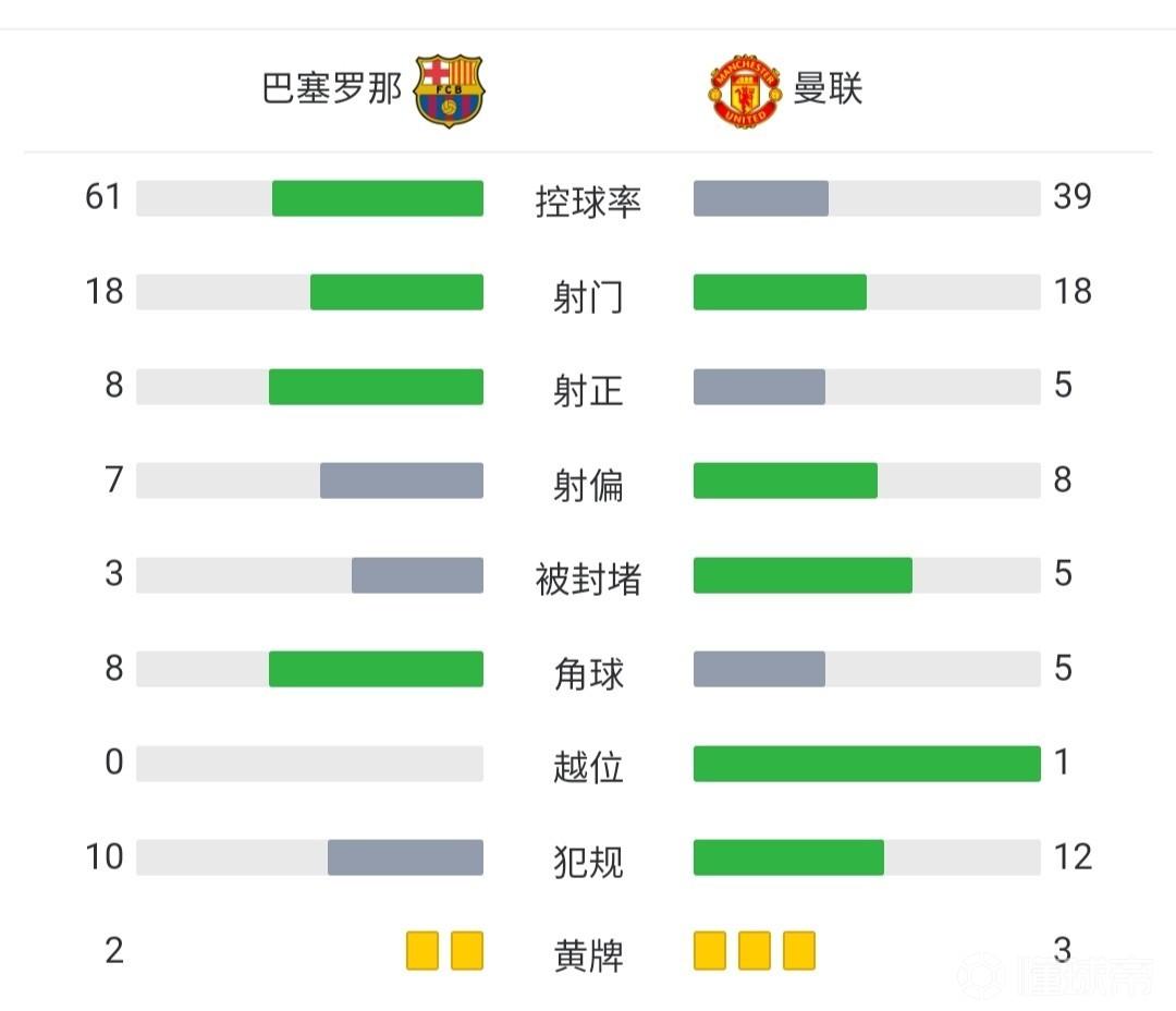 第76分钟,巴萨扳平比分,拉菲尼亚禁区外左脚兜射,皮球直入死角,巴萨2-2曼联!