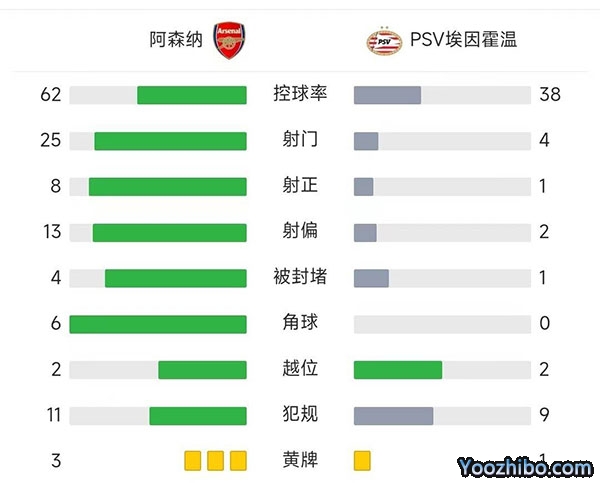全场结束,最终阿森纳1-0埃因霍温,欧联杯小组赛四连胜仍居榜首。