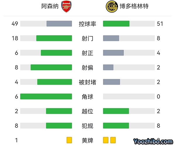 全场比赛结束,最终阿森纳3-0博德闪耀。