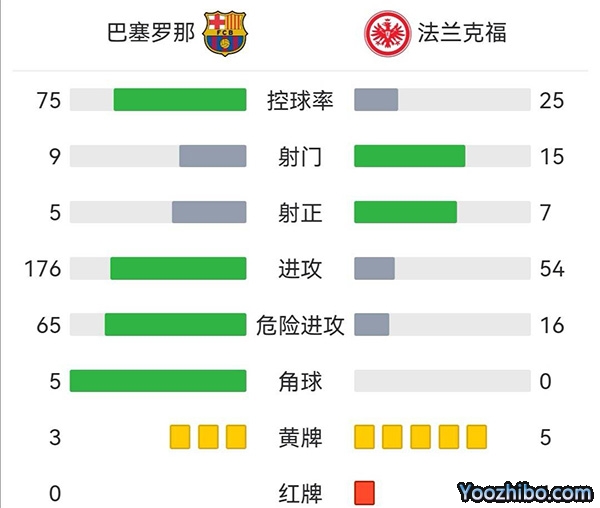 第36分钟,法兰克福反击,拉斐尔-博雷接科斯蒂奇横传后带了几步,随后一脚世界波破门,法兰克福2-0巴塞罗那。