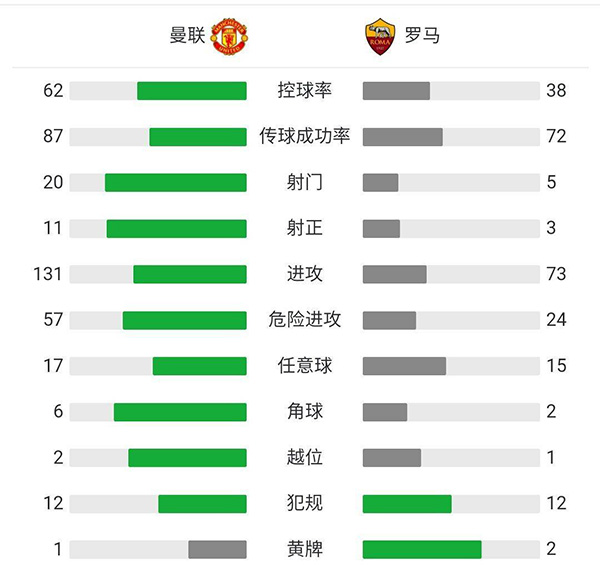 全场比赛结束,曼联主场6:2大胜罗马!首回合大比分战胜对手!