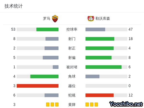 勒沃库森2-0罗马 卡尔斯多普回传送礼维尔茨破门