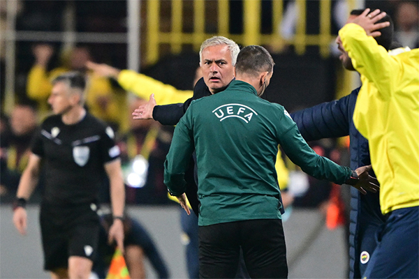JRS直播网讯在北京时间10月25日凌晨结束的欧联杯联赛阶段第3轮一场焦点战中,费内巴切坐镇主场1-1战平曼联,而本场比赛下半场,费内巴切主帅穆里尼奥因为不满点球未判,被红牌罚上看台。