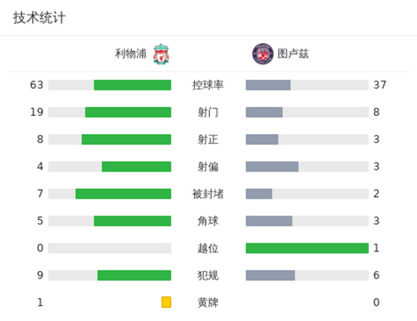 全场比赛结束,最终利物浦5-1图卢兹。
