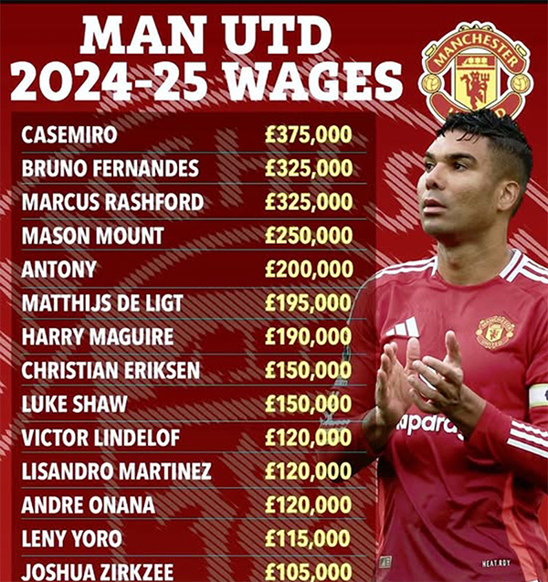 曼联2023/24赛季的工资总支出为3.65亿英镑。这笔钱是所有员工的工资,而不仅是球员的工资。根据欧足联欧洲俱乐部财务和投资状况报告,红魔在球员和教练的工资上花费了2.44亿英镑。并非所有球员都会因无缘欧冠而降薪,但如果按平均值计算,重返欧冠将让曼联将帅的工资上涨到3.05亿英镑左右。