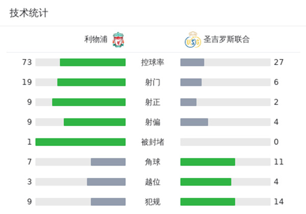 关键事件: 第43分钟,利物浦后场快发球,阿诺德持球长距离推进,随后外围远射造成莫里斯扑球脱手,赫拉芬贝赫补射破门,利物浦1-0圣吉罗斯!