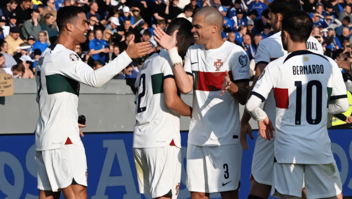 JRS直播网06月21日讯 欧洲杯预选赛继续进行,J组结束了一场焦点战,葡萄牙队以1-0小胜10人作战的冰岛队,豪取4连胜,占据晋级欧洲杯的主动权。这场比赛C罗在第89分钟打进绝杀球,是葡萄牙队赢球的最大功臣,能够在国家队200场里程碑之战取得进球,而且还是绝杀,对于C罗来说有特殊的意义。