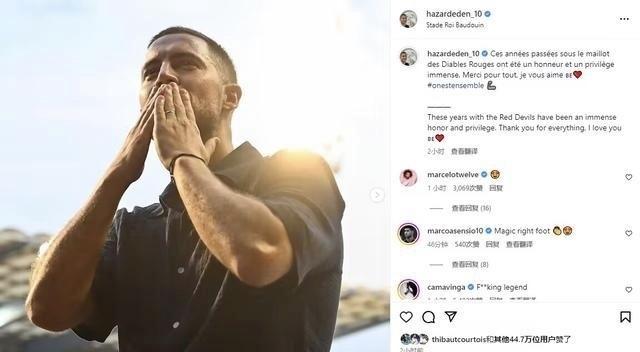 作为比利时足坛最优秀的球星之一,阿扎尔共为国家队出战126场比赛,打进33粒进球,送出36次助攻,参加了2014、2018、2022年三届世界杯,2016、2021年两届欧洲杯,去年的世界杯后,阿扎尔宣布从比利时国家队退役。如今半年后,他终于等来了一次正式的告别。