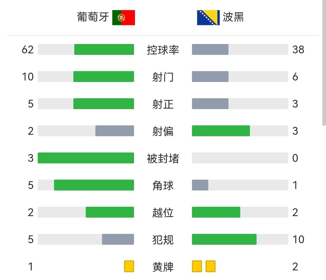 JRS直播网讯 :北京时间6月18日02:45,欧洲杯预选赛小组赛J组第3轮,葡萄牙坐镇里斯本光明球场迎战波黑,本场主裁判为达维德-马萨。上半场,C罗头槌破门越位无效,哲科错失良机,B费直塞助攻B席单刀搓射破门。下半场,B费头顶脚踢连下两城上演梅开二度,若塔浪费C罗妙传。最终,葡萄牙主场3-0完胜波黑。