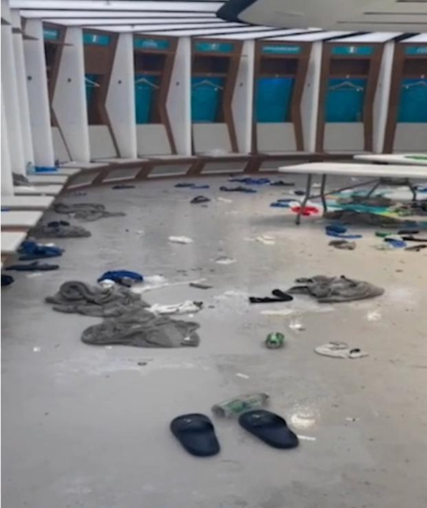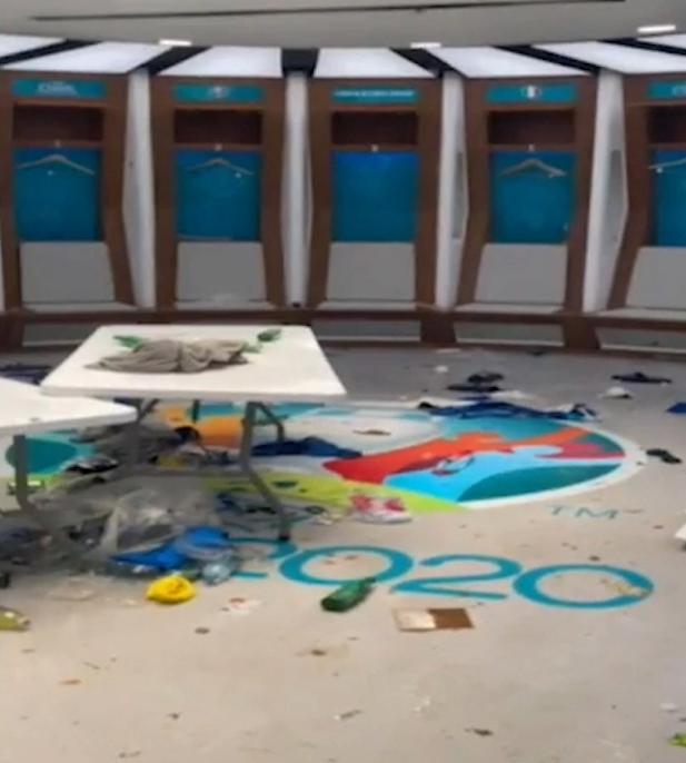 JRS直播网讯 《太阳报》今日曝光了欧洲杯后意大利更衣室的照片,意大利在庆祝完夺冠后将更衣室弄得满地垃圾,并且没有收拾就离开。