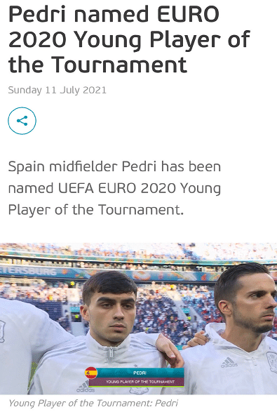 其实不论是最佳新人给佩德里,还是其他的颁奖,都会有分蛋糕的情况出现,也就是主办方为了搞平衡,比如现在已经几乎“公认”,世界杯的最佳球员金球奖的荣誉,给到的往往是亚军或者季军球队的核心球员,比如2010年的弗兰和2014年的梅西。