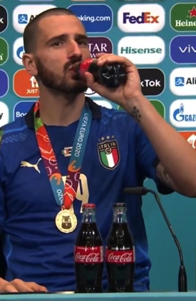 不仅在发布会喝可乐影射俱乐部队友C罗。赛后,博努奇在接受采访时还不忘嘲讽赛前高调的英格兰球迷:“赢得欧洲杯是独一无二的感觉,看到58000人在我们捧起冠军奖杯之后离开球场也是独一无二的,如今冠军要回罗马了。他们原本认为冠军会留在伦敦,但很遗憾,意大利再次给对手上了一课。”