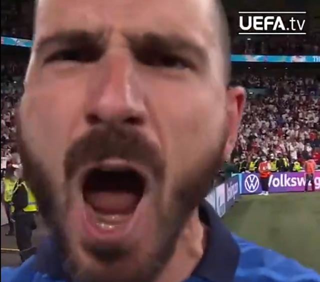 JRS直播网讯 今天凌晨,意大利在欧洲杯决赛中击败了英格兰,赛后博努奇对着镜头嘲讽英格兰球迷。