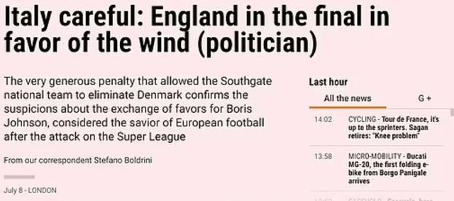 JRS直播网讯《米兰体育报》日前撰文谈到英格兰在欧洲杯半决赛得到的点球,他们表示这是欧足联在回报英国阻止了欧超联赛计划。片